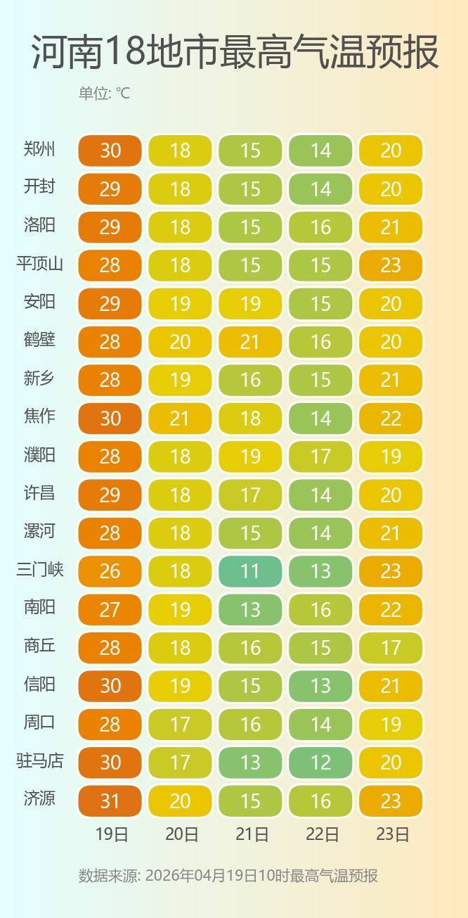 冷空气除了带来浓烈的风雨,还有彰着的降温。瞻望来日运行一直到下周三,河南的最高气温将多量降至20℃以下,尤其是下周三,大部地区仅15℃陡立。最低气温则是再度跌回10℃近邻。近期我省气温变化剧烈,众人一定要跟上天气的节拍,实时增添衣物、谨防伤风。
